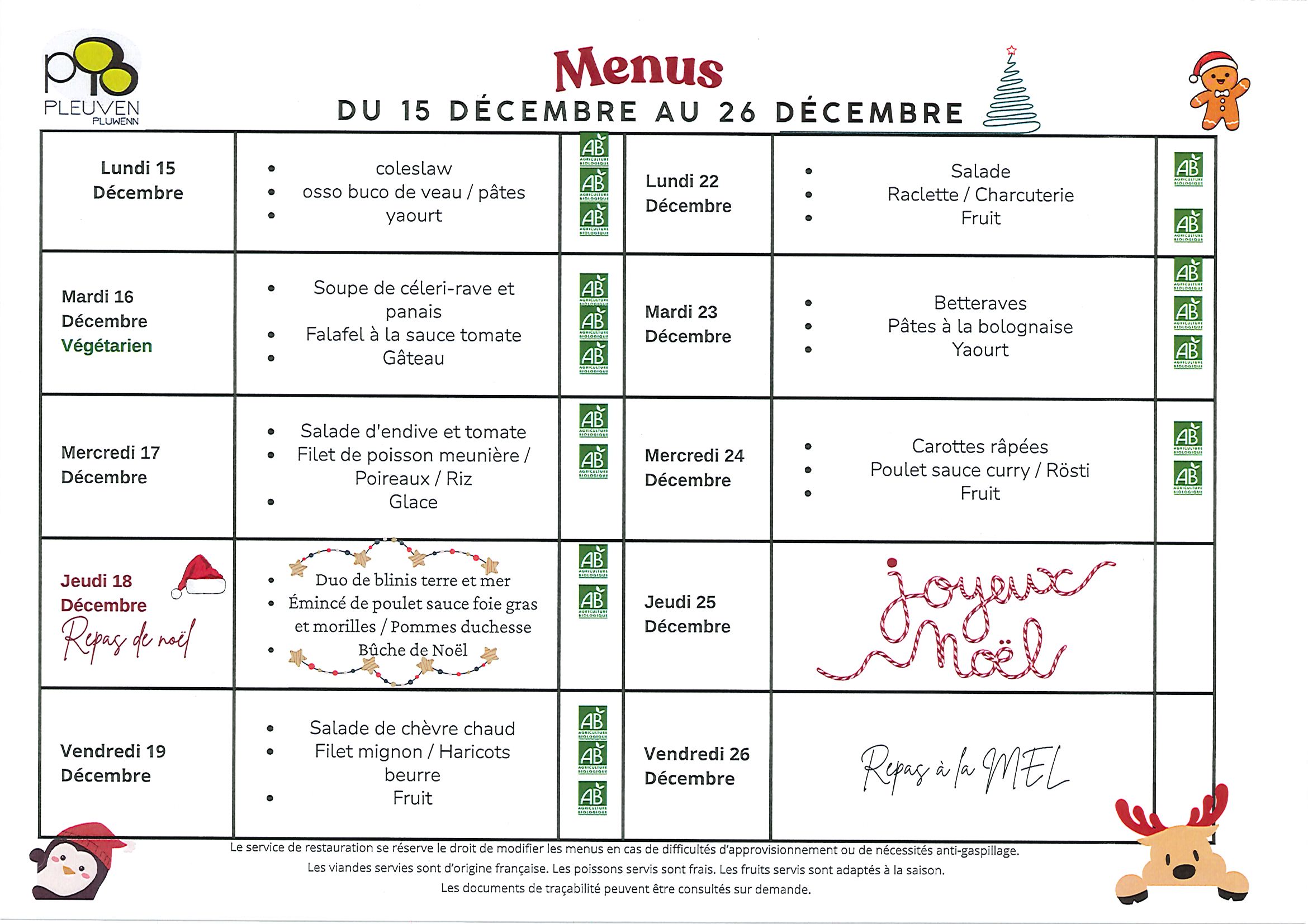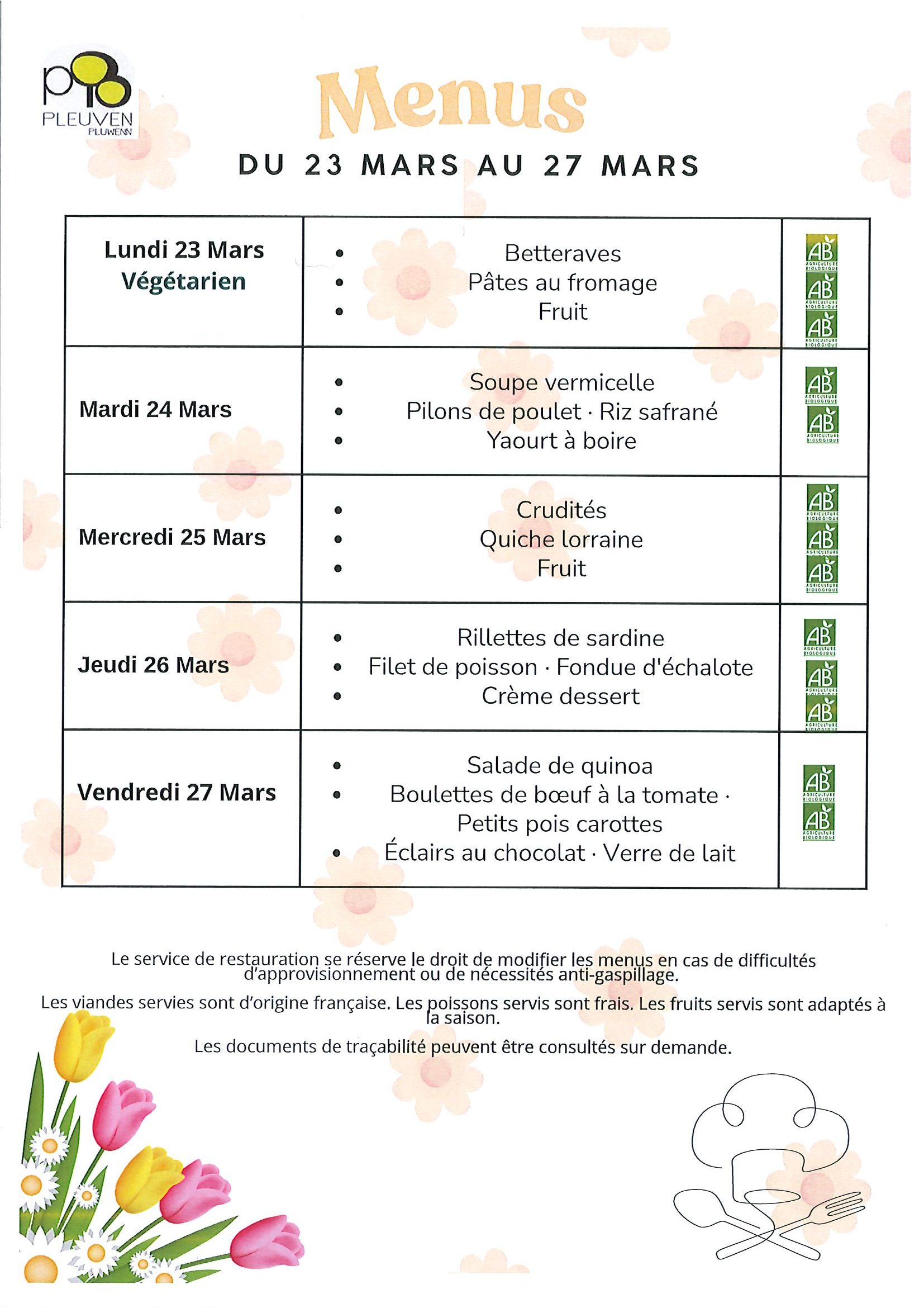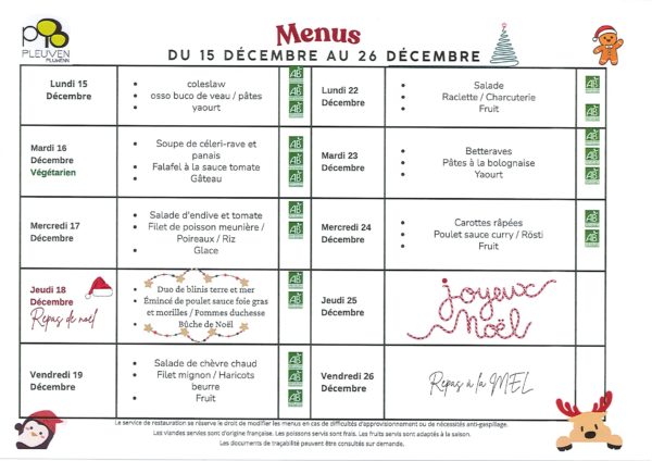 Menus du restaurant scolaire